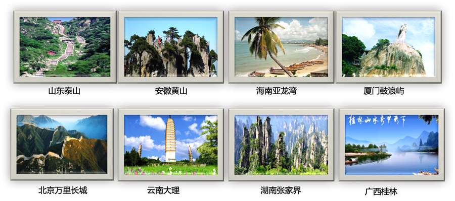 腾格里沙漠、云南丽江、云南普洱国家森林公园、长白山、海南三亚、青岛石老人、九寨沟……