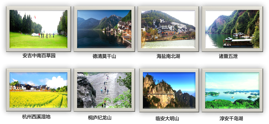嘉兴梅花洲、嘉兴博雅酒店、安吉百草原、杭州西溪湿地、宁波第九洞天、安吉藏龙百瀑、五泄国家森林公园、宁波溪口基地 安吉大竹海、杭州临安青山湖基地、纪龙山神仙峰、桐庐基地、汤江岩基地、杭州玉皇山、南北湖基地、杭州孤山风景区……
