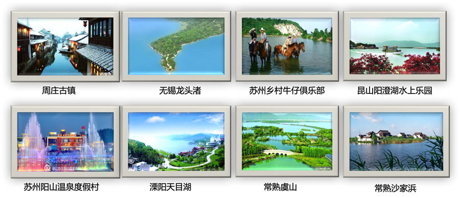 昆山亭林园基地、阳澄湖水上公园、周庄欢乐世界、常熟尚湖虞山基地、无锡龙头渚基地、江阴鹅鼻嘴基地、新洲生态园基地、苏州三山岛、苏州西山龙门基地、苏州东山雨花胜境……
